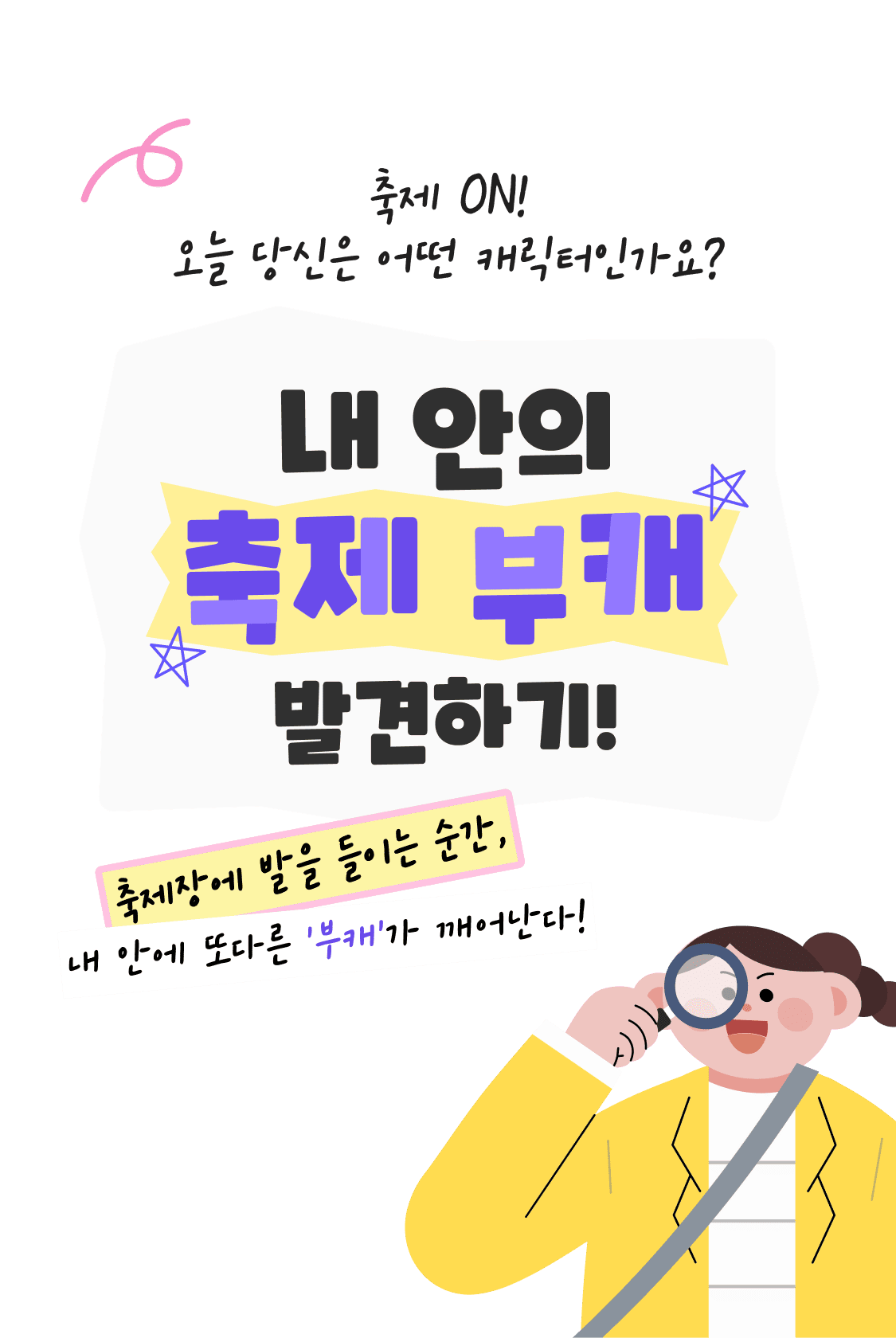 내 안의 축제 부캐 발견하기내 안에 또다른 ‘부캐’가 깨어난다! 축제장에 발을 들이는 순간,