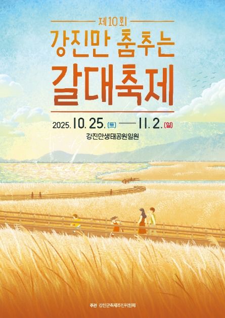 강진만 춤추는 갈대축제1,572종의 생물이 서식하는 생명의 보고 강진만 생태공원에서 아름다운 석양과 함께 다양한 공연을 만나는 축제가 열린다. 강진만 생태 탐방로 걷기 등 남녀노소 누구나 즐길 수 있는 프로그램이 마련되어 가을의 정취와 남만을 느낄 수 있다. 특히 어린이를 대상으로한 다양한 참여형 프로그램이 준비되어 있는 축제이다.