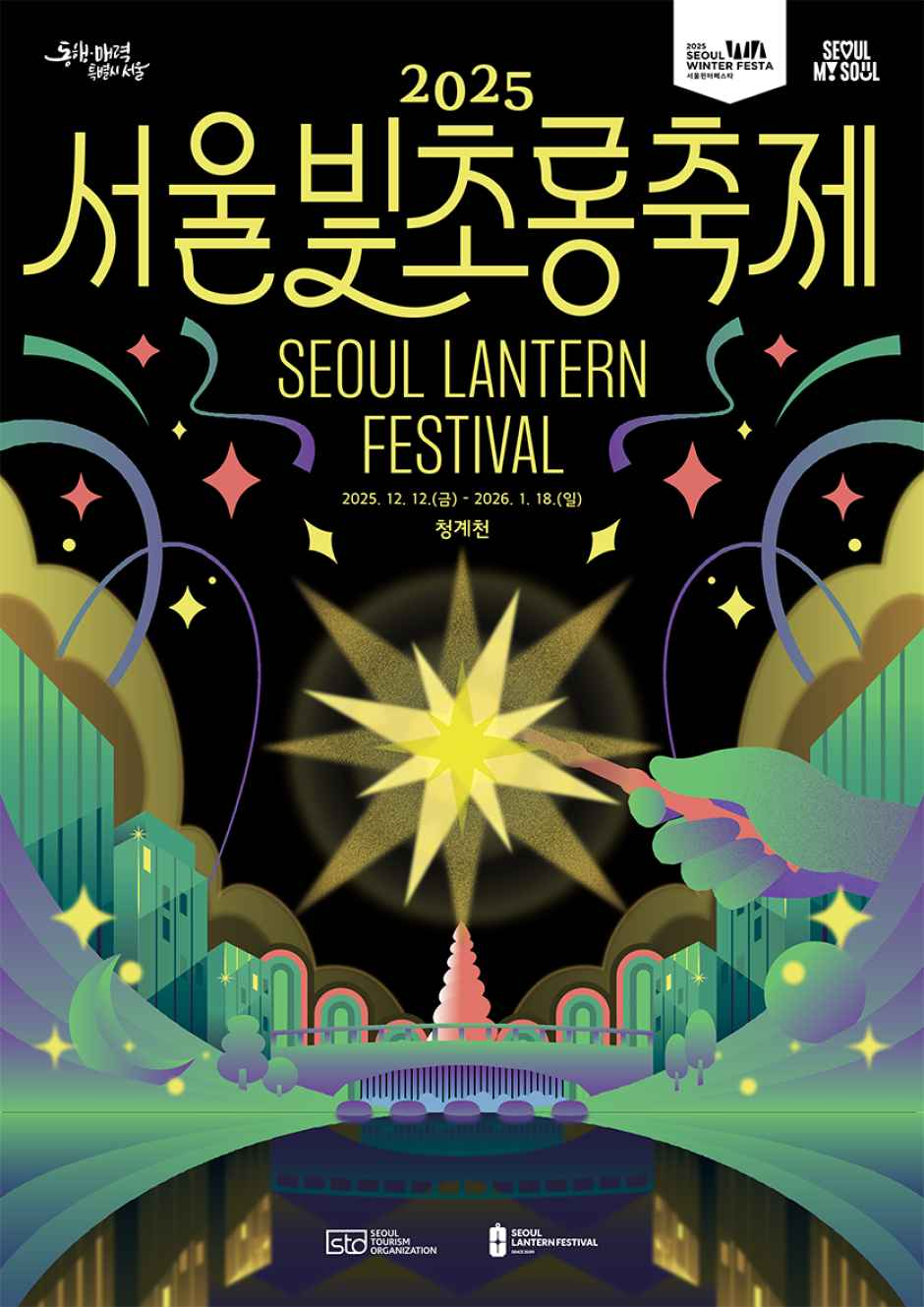서울빛초롱축제서울빛초롱축제는 2009년부터 시작하여 17회차를 맞이하는 서울 대표 야간 빛 축제로, 빛 조형물 전시와 다양한 체험 프로그램 등 화려한 볼거리를 제공한다. 특히, 이번 2025 서울빛초롱축제는 “나의 빛, 우리의 꿈, 서울의 마법"을 주제로 청계천 및 우이천 일대에서 개최된다.