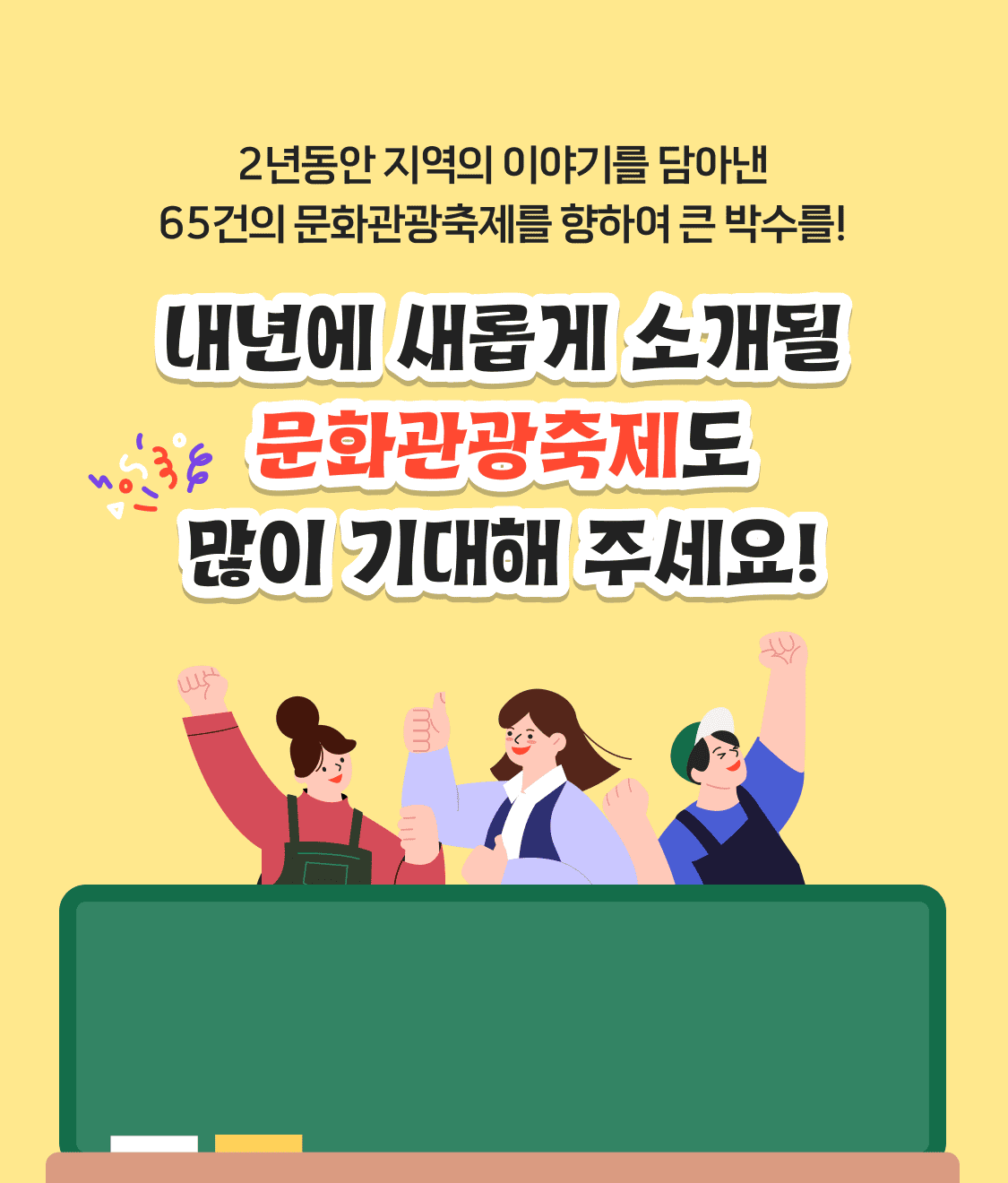 2년동안 지역의 이야기를 담아낸 65건의 문화관광축제를 향하여 큰 박수를!